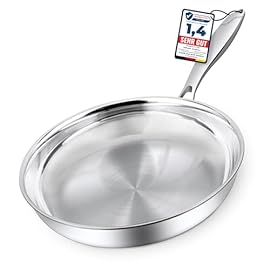 poêle en acier inoxydable 18/10 – Ø 24cm | 5 couches – 3mm – 1 kg | Poêle en acier inoxydable pour induction | Lavable au lave-vaisselle et résistant au four jusqu’à 400°C