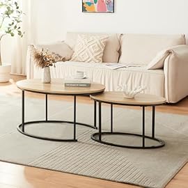 [en.casa] Lot de 2 Tables Basses Gigognes Ensemble de 2 Tables d’Appoint de Tailles Différentes Plateaux Ovales Design Industriel Panneau de Particules Acier Effet Chêne Noir