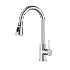 FORIOUS Robinet Cuisine, Mitigeur Cuisine, Pivotant à 360° d’Évier à Arc Élevé Pulvérisateur Escamotable 2 Modes, Acier Inoxydable