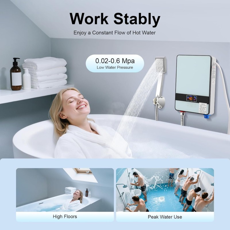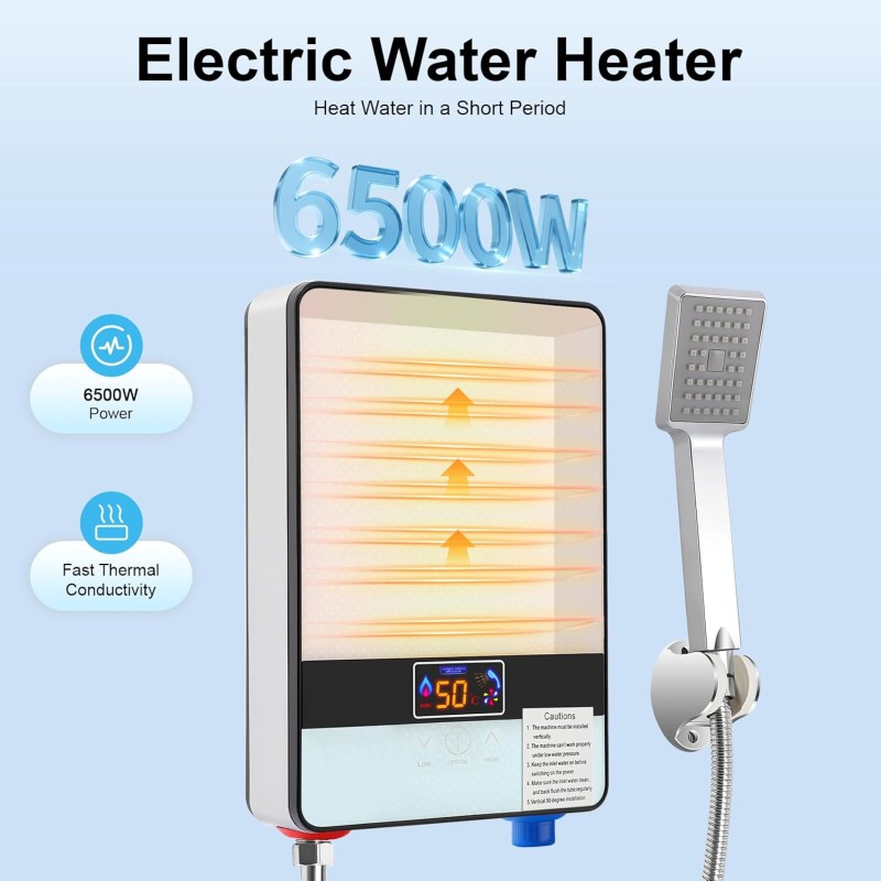 - Haute efficacité : la puissance de 6500 W et le chauffage rapide en acier inoxydable conducteur thermique vous permettent de fournir de l'eau chaude en peu de temps sans avoir à stocker l'eau et à préchauffer, ce qui évite de longues attentes.