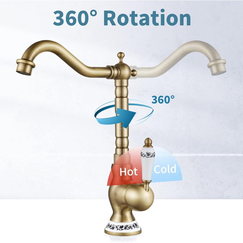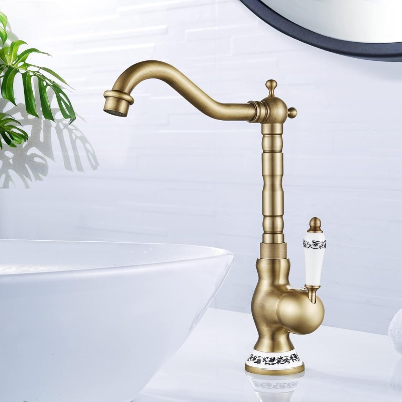 Étiquettes: Robinet de Lavabo Rétro, Robinet Salle Bain en Laiton Bronzé, Haut Mitigeur Lavabo bec Pivotant à 360°