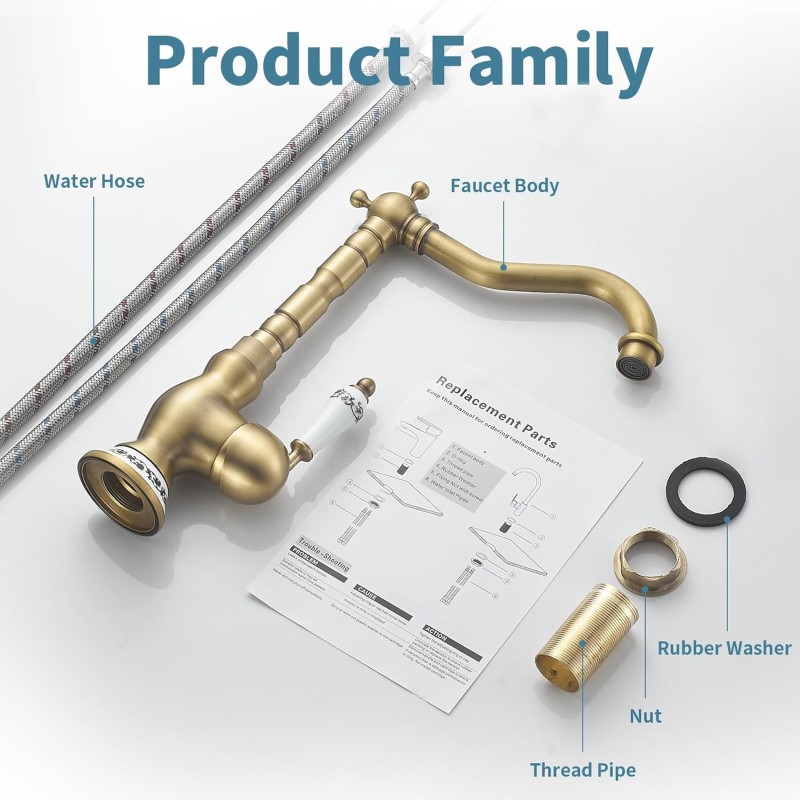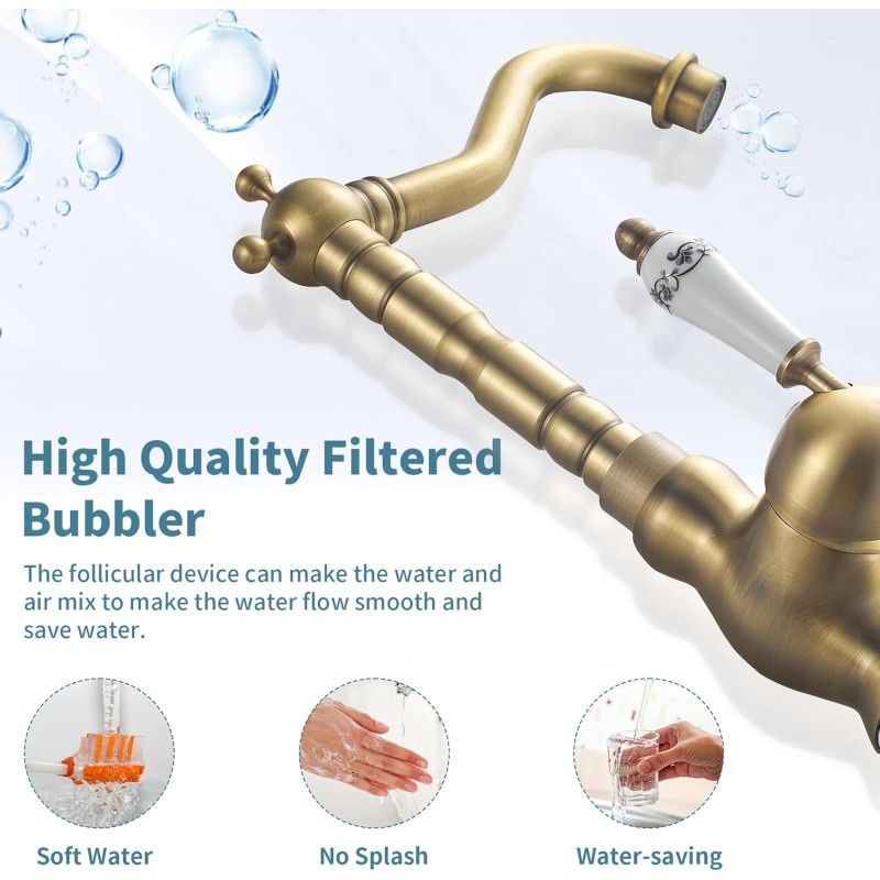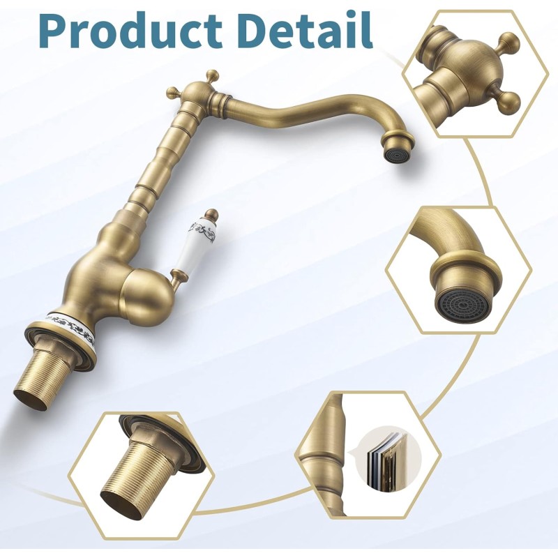 Le robinet d'évier vintage est doté d'un corps en laiton de haute qualité, associé à une poignée en céramique, présentant l'élégance vintage européenne.