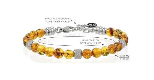 Découvrez l’élégance intemporelle de ce bracelet d’ambre polyvalent fabriqué avec des pierres d’ambre naturelles authentiques de 6 mm. Les magnifiques perles miel montrent le savoir-faire de la nature avec leurs inclusions uniques et leurs tons chauds, complétés parfaitement par des accents sophistiqués en acier inoxydable. La conception réglable assure un ajustement confortable pour les hommes et les femmes, tandis que les composants en acier inoxydable de première qualité offrent une longue durée de vie. Chaque bracelet comporte trois perles en acier inoxydable diamantées qui ajoutent une touche contemporaine au style classique de l’ambre. Cette pièce de fabrication italienne est livrée dans une superbe boîte cadeau, ce qui le rend parfait pour les occasions spéciales ou comme précieux ajout à votre collection de bijoux. La combinaison entre la beauté naturelle de l’ambre et les éléments de design moderne crée un accessoire qui passe sans problème de l’habillement décontracté à formel.