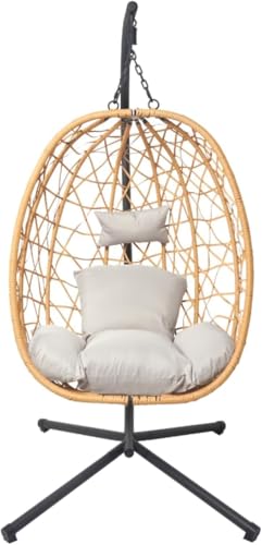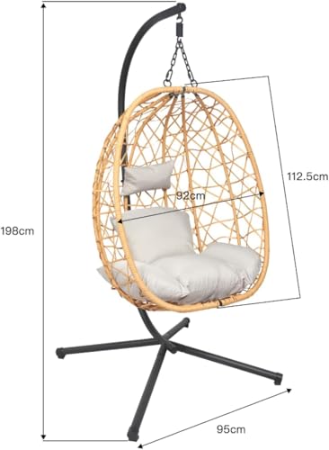 [Confort et élégance exceptionnels] Ce fauteuil suspendu CUZCO en résine tressée effet rotin naturel associe un design moderne et chaleureux à un confort exceptionnel. Profitez de ses coussins moelleux et déperlants (assise et repose-tête inclus) pour un moment de détente optimal.