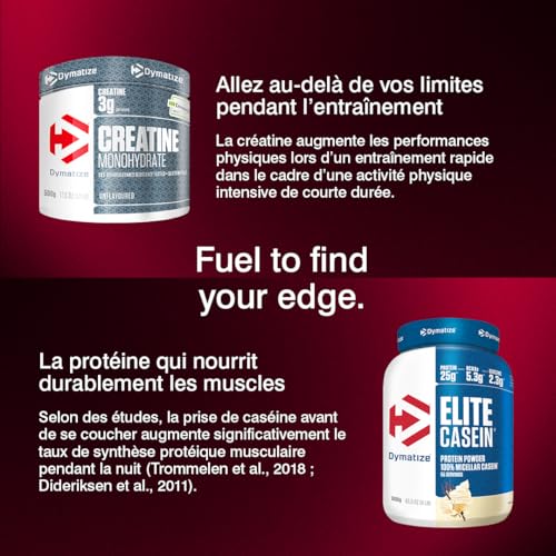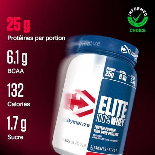 Dymatize Elite 100% Whey Gourmet : la Whey parfaite quand vous en avez besoin ! Vous recherchez la protéine de lactosérum parfaite pour chaque moment et au meilleur rapport qualité-prix, qui vous aide à soutenir la croissance musculaire après une séance d’entraînement intense ou à augmenter l’apport général en protéines ? Elite 100% Whey est une protéine de lactosérum de haute qualité pour les athlètes ambitieux de tous niveaux et à tout moment. La protéine de lactosérum est l’unique source de protéines. La protéine de lactosérum est rapidement absorbée par l’organisme et contient tous les acides aminés essentiels nécessaires au développement et à l’entretien des muscles. Le profil complexe et naturel des acides aminés vous fournit des acides aminés essentiels qui vous soutiennent au mieux dans le développement et le maintien des muscles. Pauvre en sucre, c’est le bon choix pour tous les athlètes qui accordent une attention particulière à leur apport calorique. Sa bonne solubilité, même dans l’eau, permet d’économiser des calories. Le contrôle effectué par « Informed Choice » a révélé que l’Elite Whey était exempte de substances interdites. Les athlètes peuvent donc la consommer en toute tranquillité, notamment en période de compétition. Elite 100% Whey est particulièrement adaptée après l’entraînement ou entre les repas pour une boisson riche en protéines.