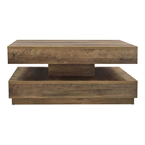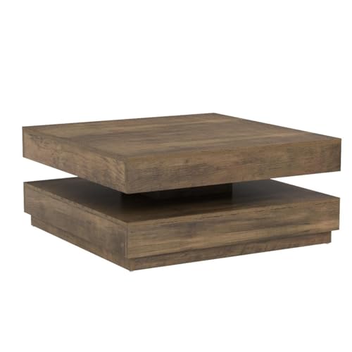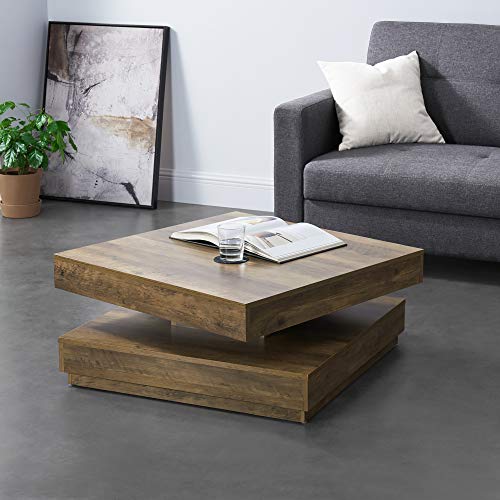 [en.casa] Table Basse avec Plateau Carré Pivotant et Étagère Inférieure Table d’Appoint Design Intemporel pour Salon Chambre Panneau de Particules 76 x 76 x 38 cm Effet Bois