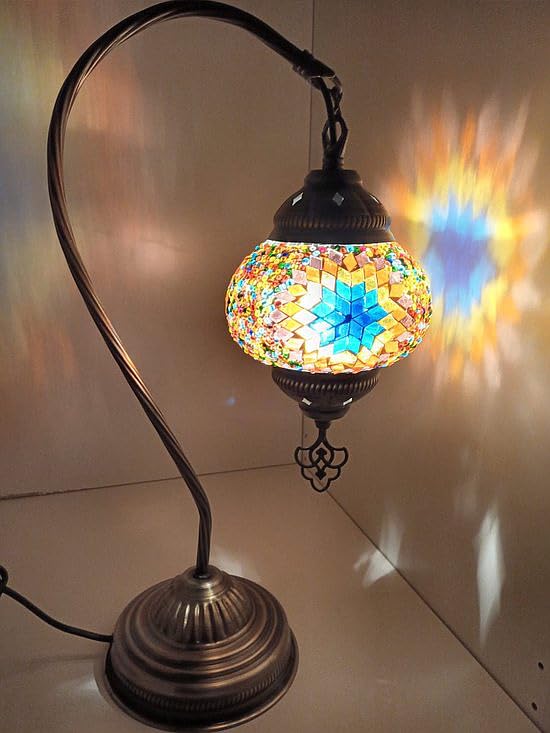 Halay Lampe Mosaïque – Orientale – Turque – de Table – Marocaine – Modèle Arc – Ø 15 cm – Hauteur 42 cm – Fait main – Authentique – Multi couleur