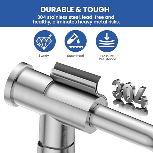 Robuste et durable : ce mitigeur d’évier de cuisine est fabriqué en acier inoxydable SUS304 multicouche, de haute qualité, sans plomb, qui est durable. Le pommeau de douche extensible est fabriqué en plastique et est facile à utiliser. Le noyau de la valve en céramique peut prolonger la durée de vie du robinet jusqu’à cinq millions de fois, tout en changeant facilement la température et le débit d’eau
