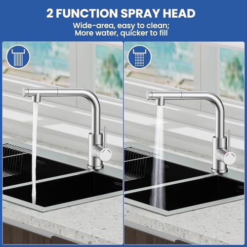 Notre robinet de cuisine est doté d’une douchette extractible en forme de L moderne, fabriquée en acier inoxydable durable pour une finition impeccable. Fabriquée en plastique résistant, cette douchette offre deux modes de pulvérisation : un jet puissant pour un nettoyage efficace et un jet laminaire doux pour remplir les casseroles et poêles. Le flexible extractible permet d’accéder facilement à tous les recoins de votre évier. Ce robinet de cuisine en acier inoxydable allie fonctionnalité et style intemporel, ce qui en fait un ajout idéal à toute cuisine moderne.