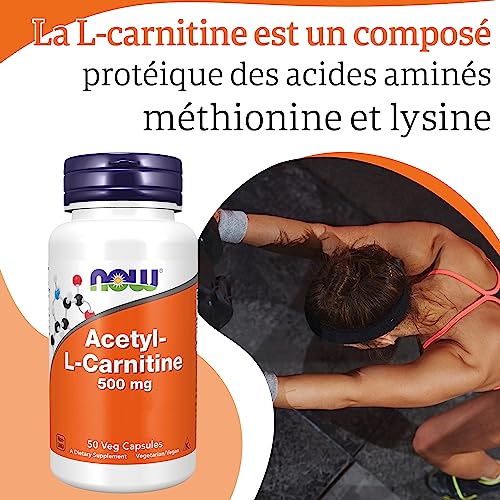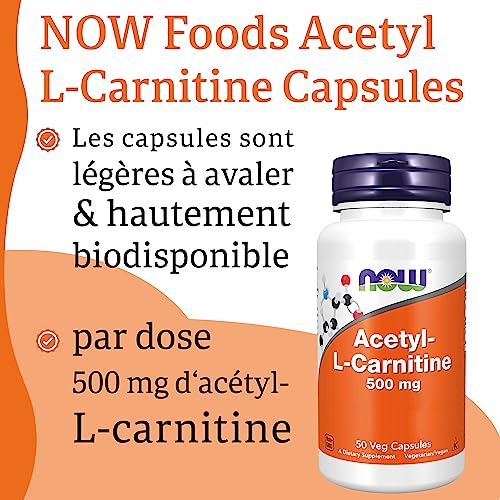 Now Foods, Acetyl-L-Carnitine, 500 mg, 50 Gélules végétaliennes, Testé en Laboratoire, Acide Aminé, Sans Gluten, Sans Soja, Végétarien