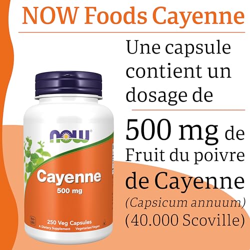 HAUTE DOSE : Une dose, une capsule, Cayenne de Now Foods contient 500 mg d’extrait de fruit de poivre de Cayenne, que vous pouvez donner à votre corps chaque jour