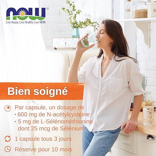 HAUTE DOSE : Une dose, une capsule tous les trois jours, NAC 600mg de Now Foods contient 600mg de NAC, 50mcg de molybdène et 25mcg de sélénium, que vous pouvez apporter à votre corps chaque jour