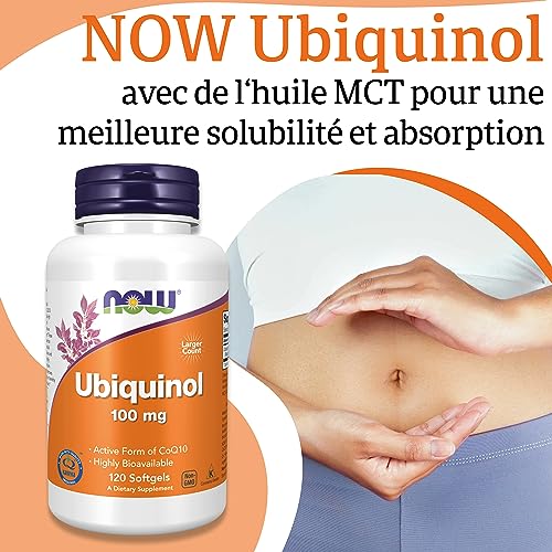 Now Foods, Ubiquinol, 100mg, 120 Capsules molles, Testé en Laboratoire, Coenzyme Q10, Sans Gluten, Sans Soja, Sans OGM