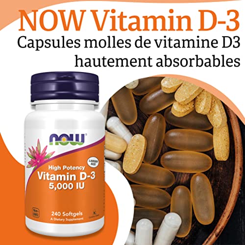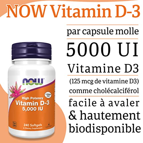 Now Foods, Vitamin D3 Depot, 5.000IU, Cholécalciférol, Haute Dosé, 1 Capsule tous les 5 Jours, 240 Capsules molles, Testé en Laboratoire, Sans Soja, Sans Gluten, Sans OGM