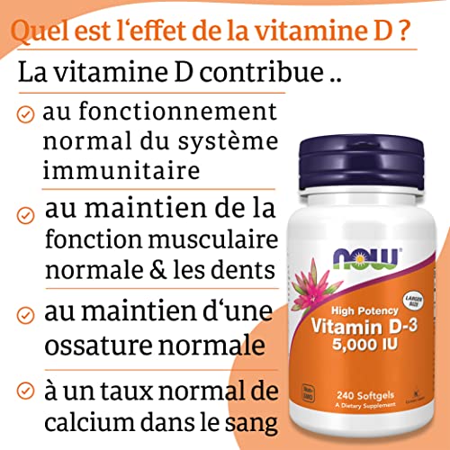 HAUTE QUALITÉ : La qualité et la pureté des capsules de vitamine D3 de Now Foods sont testées par des laboratoires indépendants
