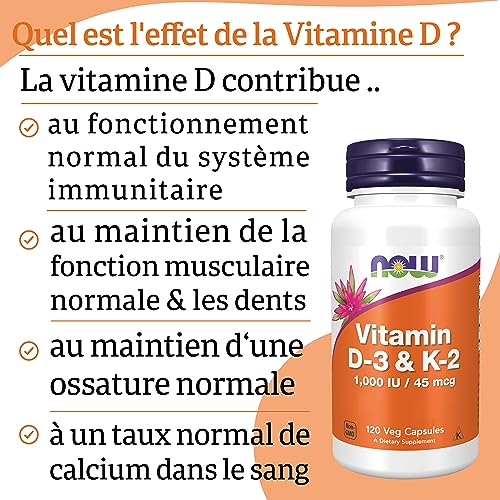 Now Foods, Vitamin D3 & K2, 1.000 UI, 120 Capsules végétaliennes, Testé en Laboratoire, Multivitamines, Sans Gluten, Sans Soja, Végétarien