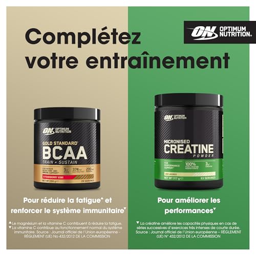 La formule de protéines de lactosérum ON est certifiée Informed Choice, contient des BCAA et de la GLUTAMINE d’origine naturelle et est FAIBLE EN SUCRE et en gras