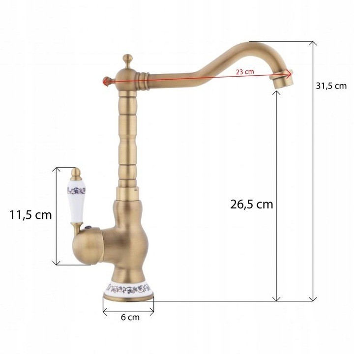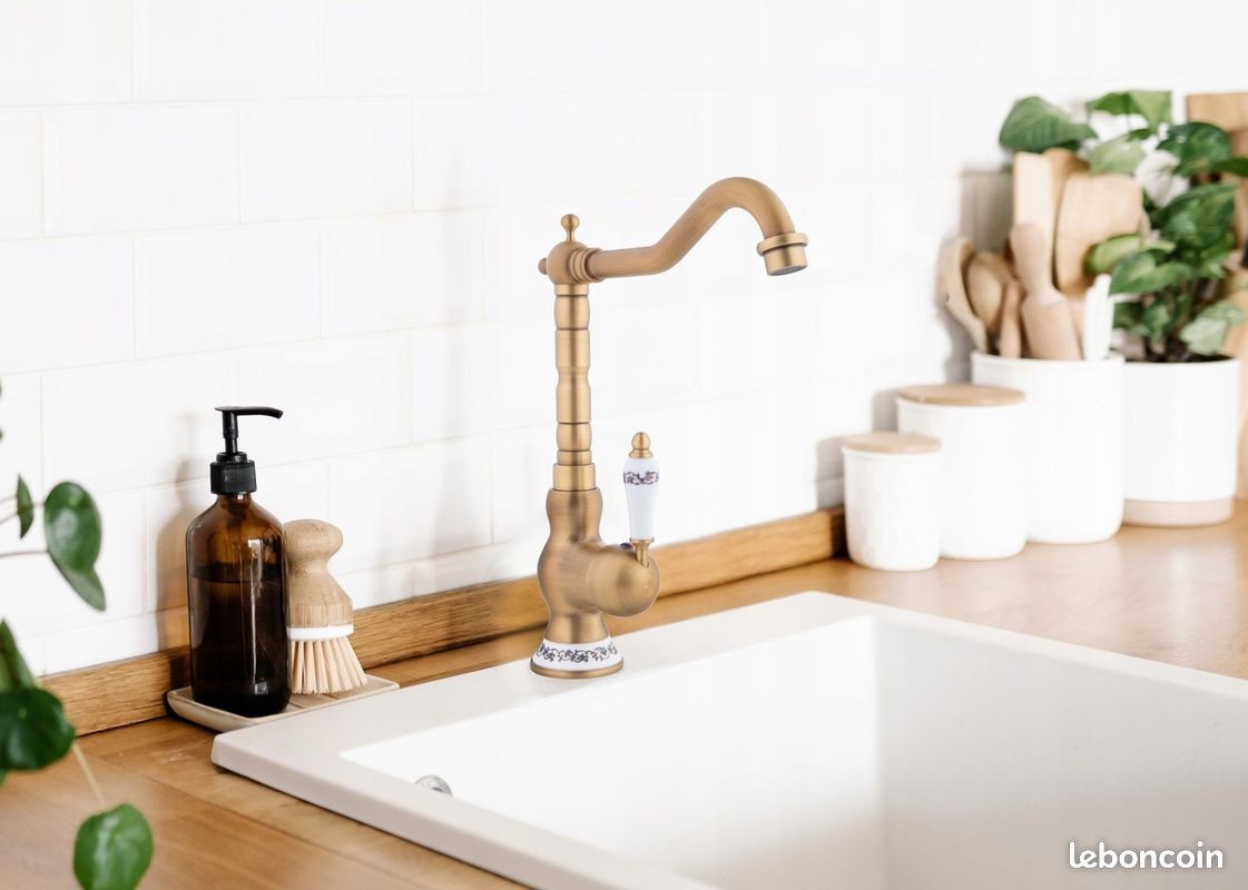 Voici mon robinet de cuisine en laiton doré de style vintage. Il est équipé d’un bec pivotant pour une utilisation pratique. Avec son design élégant et son fini de haute qualité, ce robinet apportera une touche chic à votre cuisine. Il est en excellent état et prêt à être installé. N’hésitez pas à me contacter pour plus d’informations ! – Robinet de cuisine en laiton doré – Bec pivotant pour une utilisation flexible – Design vintage et élégant PRODUIT NEUF DANS SON CARTON D’ORIGINE Spécifications: Marque : Yoka Home Code produit : B.BATUG-GLD Déclaration de conformité: MN/1405/2019 Matériau: laiton, céramique, Couleur : Or Tête: mécanique, céramique Type de batterie: Évier unique Trou de montage: 35 mm Épaisseur maximale du plan de travail: 60 mm Raccord à l’eau (serpents): 3/8 pouces Classe de débit: A Température maximale: 90 o