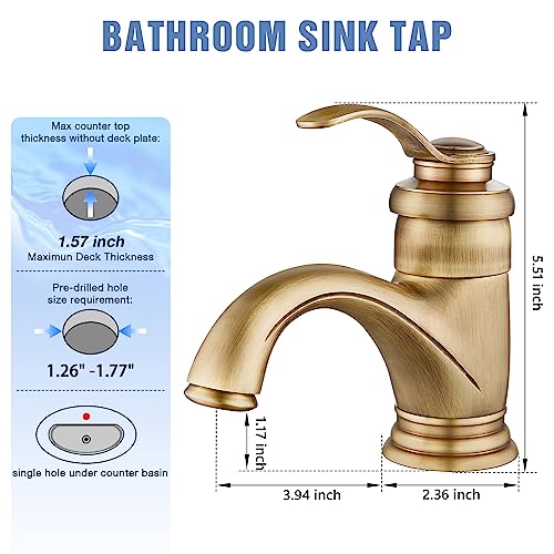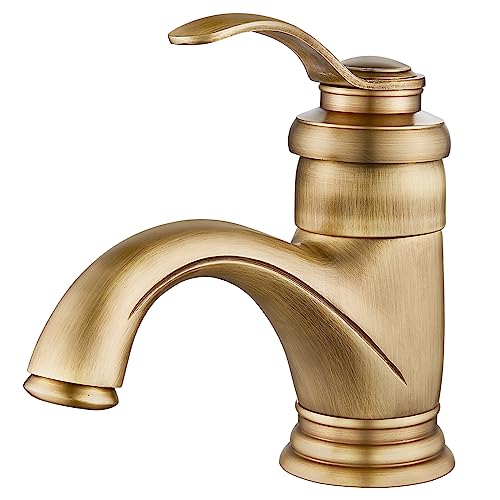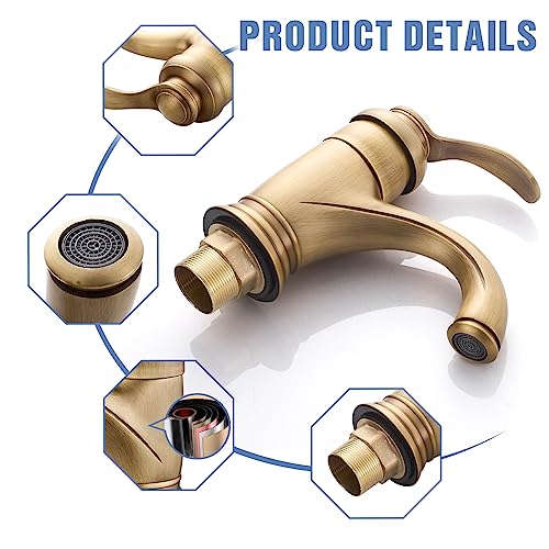 Robinet Salle de Bain Rétro, Monocommande Mitigeur Lavabo en Laiton, Moderne Robinet de Lavabo avec Chaude et Froide Réglable, Laiton 3/8”
