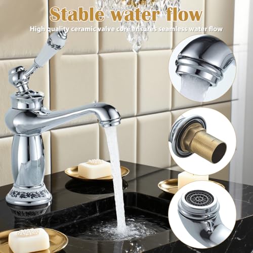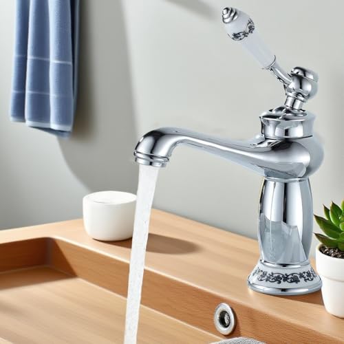 💦【Design rétro】Le robinet de salle de bain présente un design rétro, un style européen vintage, avec une poignée et une base en porcelaine bleue à haute température et un décor floral rétro, ce qui le rend idéal pour une installation dans une salle de bain ou une cuisine afin de rehausser le style de votre espace de vie.