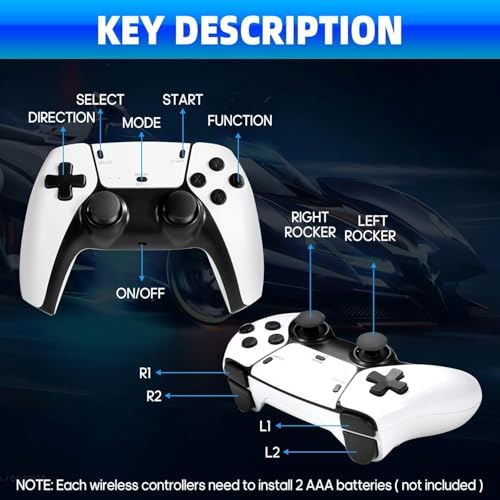 2️⃣ 【Retro Gaming avec 2 Manettes Sans Fil】Deux manettes sans fil ultra-réactives incluses – parfaites pour les duos endiablés sur votre canapé ! Portée de 6 mètres sans lag, idéal pour les soirées jeux vidéo mouvementées 🎮🔥