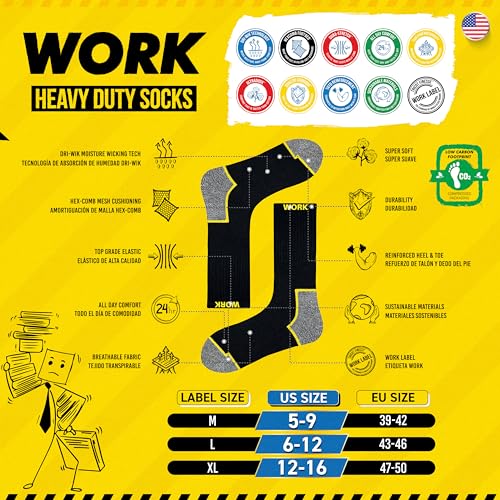 SOXCO chaussettes de travail homme 10 Paires, WORK socks lot de 10 paires
