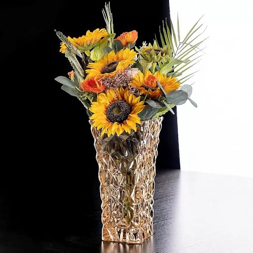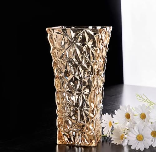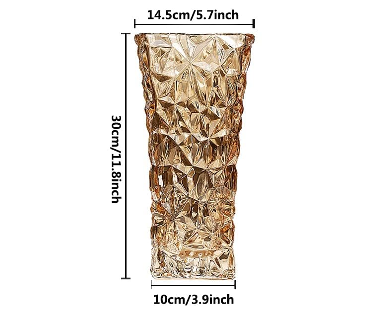 Décorez votre maison, votre bureau ou un événement spécial avec ce vase en verre doré à texture glacier unique de 30 cm de haut. Il a été conçu à cause ressembler à du verre à texture de glacier cristallin mais en même temps il reste résistant à la casse. Poids de 3,4 kg par rapport à un vase ordinaire, plus épais et solide. Utilisations : arrangements floraux, bambou porte-bonheur, plantes grasses, plantes, branches, soie, arrangements. (Populaire avec : planificateurs d’événements, fleuristes, architectes d’intérieur, restaurants, décorateurs de maison.)