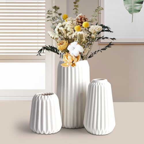 🌼[Elégant et intemporel] Vase est adapté à différents styles de scènes, Cet ensemble de vases en céramique de la nature peut être utilisé comme un élément décoratif, parfait pour placer des fleurs fraîches, de l’herbe de pampa, des fleurs séchées, des fleurs artificielles, des tiges, des bouquets, ajoutant une touche de couleur;humide et sec, ajoutez de l’eau et des roses tulipes à votre chambre à coucher, salon, cuisine, bureau, il rendra votre maison plus vivante et ajoutera une couleur différente.