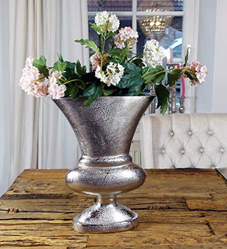 Luxe pour votre intérieur : un vase de qualité supérieure en aluminium épais. Ce superbe vase sera particulièrement beau dans une entrée, sur un rebord de fenêtre, sur une commode dans le salon ou un bureau chic. Le vase possède un pied lourd et est donc très stable sur le sol. Le vase orné de fleurs artificielles, ou même le vase seul sans décoration, est très élégant et attire tous les regards.